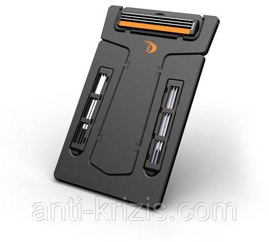 Маєте кредитну картку? А чи можете Ви поголитися нею? Дивне питання? Ну, чому ж, життя непередбачуване, прокинутися вранці можна де завгодно, та й відрядження ніхто не відміняло. Вам необхідно поголитися, а бритви ні? Вихід є! Бритва-кредитна карта, легко перетворюється на бритву. Бритва-кредитка легко поміститься у Вашій кишені або в портмоне. Є дзеркало зі зворотного боку. Бритва з кредитну картку — це найкращий подарунок для будь-якого чоловіка.